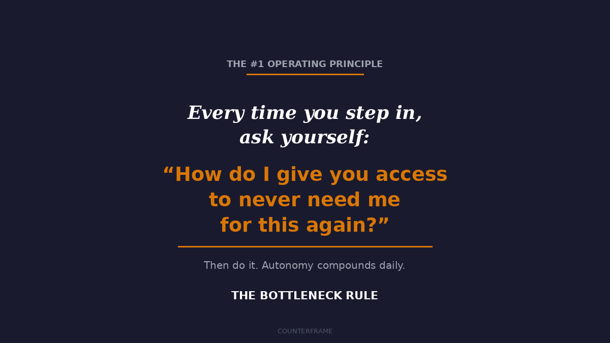 Phase 5: Security — The two-channel model (non-negotiable), incremental trust, and the Bottleneck Rule (the single most important operating principle in the entire playbook)