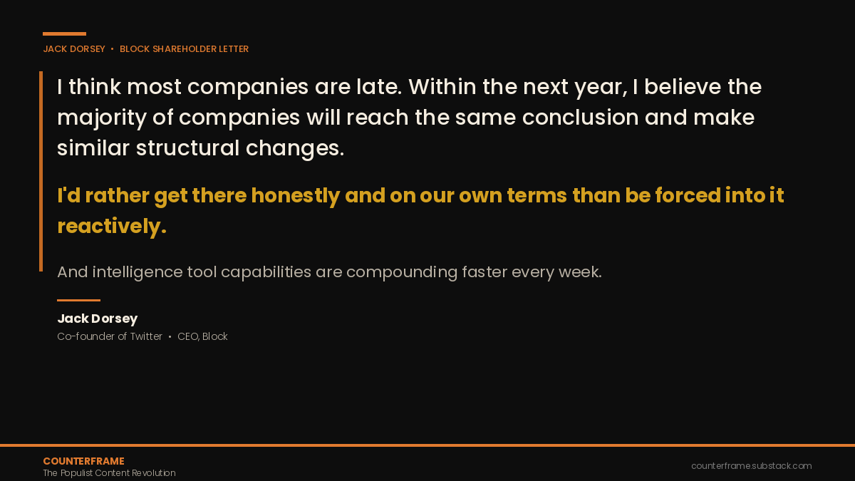 Dorsey’s letter didn’t hide behind corporate euphemisms. No “restructuring to better align with strategic priorities.” No “right-sizing for market conditions.” Just this: